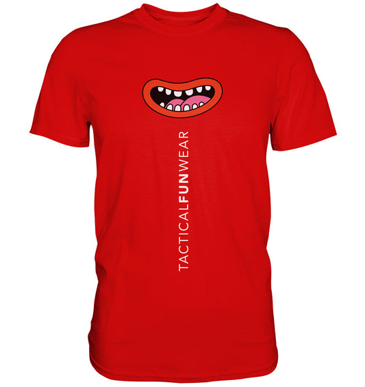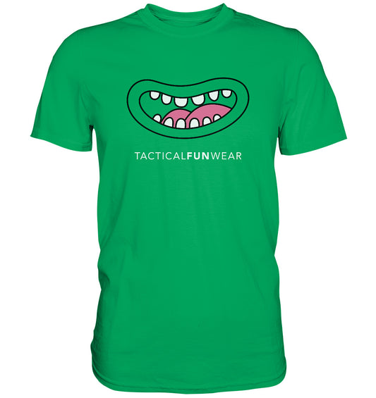 Geh durchs Leben mit einem Lächeln auf den Lippen … und auf Deinem Shirt. Mit dem TacticalSmile™-Shirt setzt Du ein charmantes Statement und machst die Welt um dich herum ein bisschen heller und heiterer. Cheese!